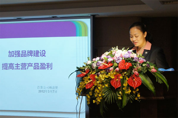 百货公司常务副总经理杨洁贤从加强品牌建设、提高主营产品盈利的角度讲了做法和体会。