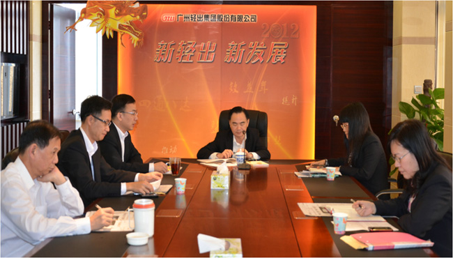 3月19日上午,集团董事会召开专题学习会,学习讨论中国企业报刊登的《广州轻出“变阵” 缔造“幸福轻出”》文章。集团董事长卢业干主持会议,班子成员分别做了发言。