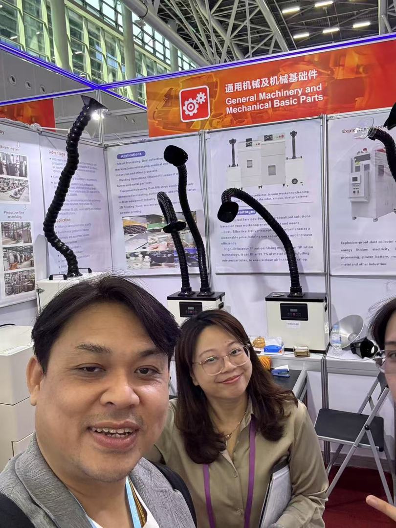 轻出公司始终坚持创新驱动,不断推陈出新。在加工机械展位上,食品加工、纸盒包装、线缆加工等三大类机械产品整齐排列,可充分满足各类生产需求。为顺应市场发展趋势,特别新增组合炉和醒发箱等备受关注的食品机械产品,为我司食品加工机械系列注入全新活力,带来更多发展契机。此外,首次亮相的金属粉尘回收器采用了先进的多层过滤技术,能够捕获高达99.9%的金属粉尘,实现了废粉的回收再利用,有效降低环境污染,是绿色生产的不二之选。开展首日,便吸引众多客商纷纷驻足咨询,来自南美、东南亚、欧洲、中东以及俄罗斯等国家地区的40多位客商对展品表现出浓厚兴趣,现场交流热烈非凡。