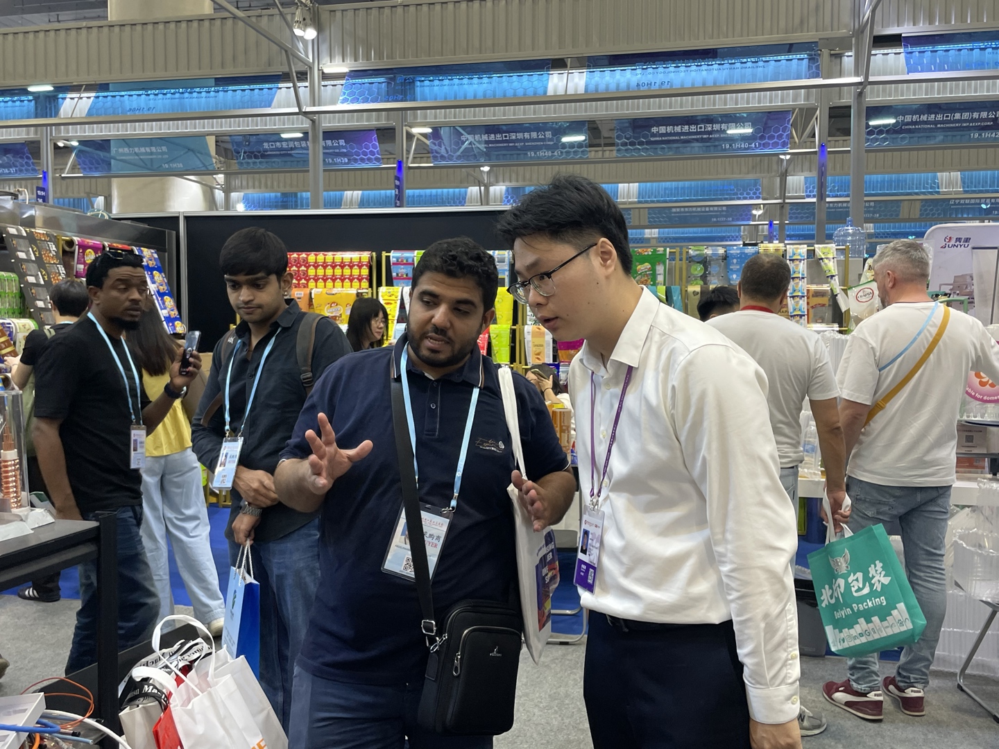 在广交会第一期加工机械展区,轻出公司以“智能化、高效化、绿色化”为主题,展出多款食品机械与自动化设备。其中,组合式烘炉成焦点,它兼具风炉和层式烤炉功能,能满足多样烘焙需求,工艺领先、稳定性好,获众多客户认可已打入美国市场。此外,自动冻肉切片机与切菜机以性价比高和简易操作的性能吸引采购商群体咨询。开展首日,机械展区共接待了来自埃及、巴西、阿根廷、印度、伊朗、约旦、南美、中亚等国家地区超50批次客商。