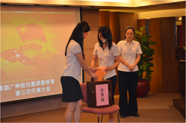 会议在庄严的国歌声中拉开帷幕。在选举过程中,团员代表们也分别投上了自己庄严的一票。最终当选的第三届团委委员有(按姓氏笔画顺序):李可儿(五矿)、陈少珊(高宝)、奚菲菲(鞋帽)、高涛(集团人事部)、曾悦(鑫诺)。