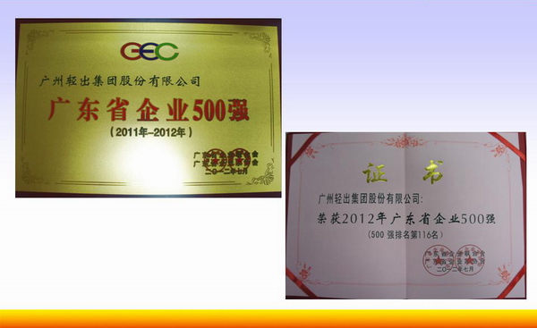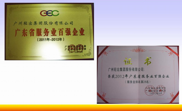 2012年7月25日,广东省企业百强发布会在珠江宾馆召开,我集团荣获2012年广东省企业500强(第116名,比去年提升5名)、2012年广东省服务业百强企业(第28名,比去年提升2名)。