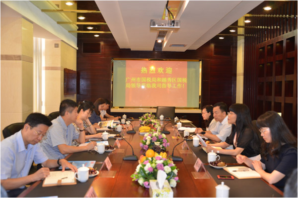 8月7日上午,广州市国税局会同越秀区国税局来我司进行暖企交流活动。市局王峰总经济师、进出口退税处龙萍处长、苏英丽副处长;越秀区局张伟局长、黄嘉颖副局长等一行共九人参加。
