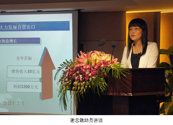 集团常务副总经理谢侃武对各位参展代表提出三点要求,一要大力发展自营出口;二要做大进口,加快调整;三要加强团队经营。勉励各参展代表以饱满的精神状态来参加第112届广交会。