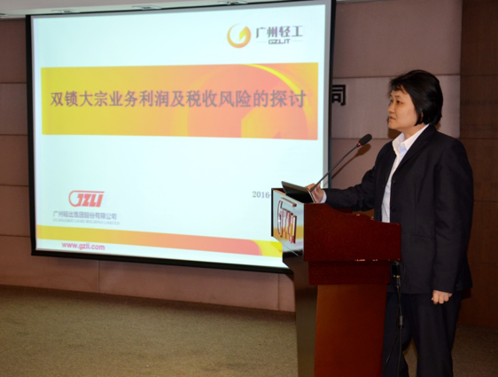 2、集团财务总监简玮仪讲解大宗商品双锁业务税收及盈利风险管理方案。