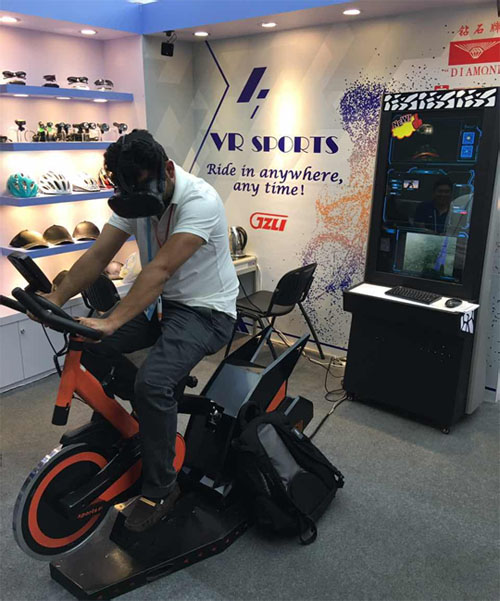 “VR高清头显+42寸高清屏”带来充盈整个视野的逼真画面,加上“多功能互动手柄”,使之流畅自如地与虚拟世界进行交互,给予用户360°的沉浸式体验,吸引了一大批欧美采购商驻足体验。