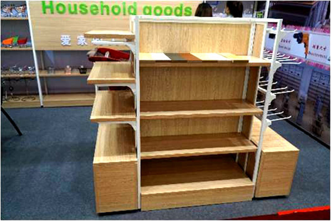 超市用品设备系列展品注重外观设计,以木货架构成整体展示风格,主攻高端家居用品卖场。其中迷你车、迷你篮产品形成15大类,5种表面处理,种类达全国最齐全;新增大型塑料购物车,采用独特模具,打造流行款式。展品接到南非、厄瓜多尔、德国等国家客户下单。