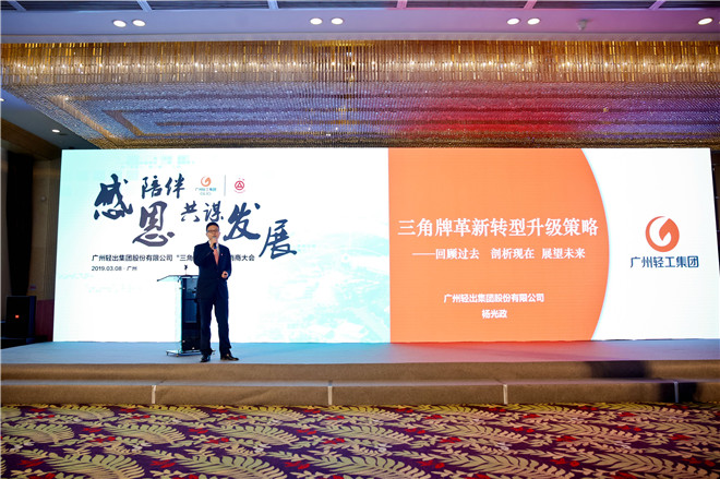 3月8日上午,我司召开了主题为《感恩陪伴 共谋发展》的“三角牌”首届经销商会议,广州轻工工贸集团有限公司党委书记、董事长方贵权及集团相关领导出席了会议。