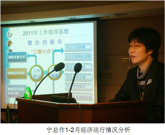 会议由李伟全副总经理主持。常务副总经理宁丽丽对集团1-2月经济运行情况进行了分析,宁总指出,1-2月集团销售收入和利润都实现了增长,重点项目全面推开,但主营业务盈利能力仍有待提高,要求各子公司在十二五规划中要结合主营业务开展重点项目,一把手要亲自抓,提高盈利水平。卢业干董事长讲了三个重要问题:(一)传达了3月7日国资委黄伟林主任来轻出指导工作时发表的重要讲话;(二)集团领导班子集中学习黄主任讲话精神;(三)落实6000万元净利润的具体举措,集团今年要做好三件事情:1.达到销售收入40亿元、利润4000万元的目标;2.做好石榴岗仓库股权转让;3.推进股改上市。各子公司也要做好三件事情:1.保证今年目标的完成;2.做好十二五规划;3.抓重点项目提高盈利,确保达到上市时达到5000-6000万元净利润的要求。