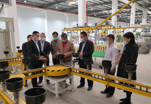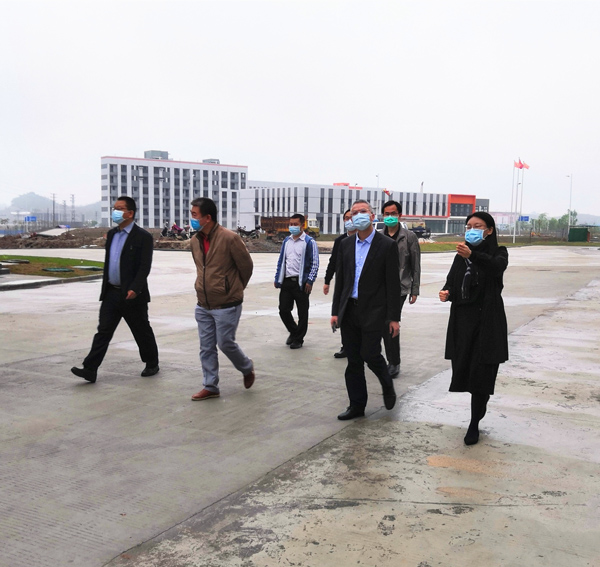 林虎副总经理一行前往园区视察项目工程基建情况、各车间设备进场情况以及了解车间生产线具体运作流程,并与部分入园企业老板进行沟通,详细询问目前入园企业的进展情况。