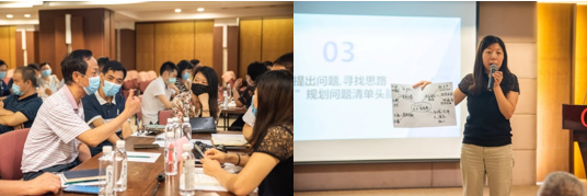 随后,与会人员分组专题讨论,经过近一小时热烈积极的交流研讨后,各小组代表分别从外部环境、定位标杆、出口、进口、品牌和人力资源等六个方面提出了公司现有优势与不足,就未来发展方向等战略要素进行了建议。