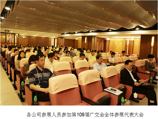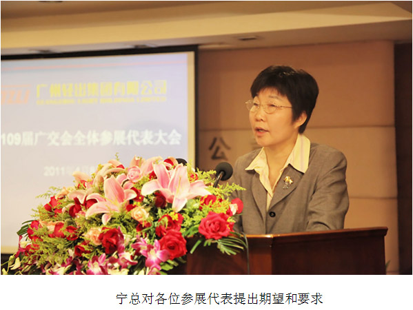 第109届广交会将于2011年4月15日至5月5日分三期在琶洲展馆举行。2011年4月8日上午,广州轻出集团有限公司召开了第109届广交会全体参展代表大会,集团领导班子出席了会议,为我司各参展企业分析形势、鼓舞士气、提出要求。