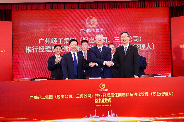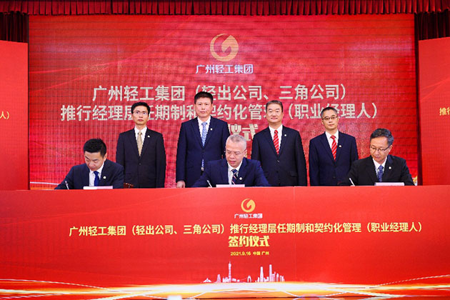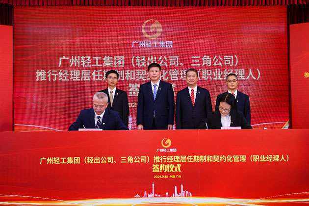 推行任期制和契约化管理是顺应国企改革发展大势的现实需要,是激发内生动力的关键举措,是实现高质量发展的必然要求。本次签约仪式圆满成功,标志着轻出公司、三角公司的任期制和契约化管理制改革迈出关键一步。轻出公司、三角公司将抓住历史机遇,牢记使命,肩负重责,力争实现企业管理和经营业绩的双提升,为广州轻工集团实现跨越式高质量发展凝聚强大动力!