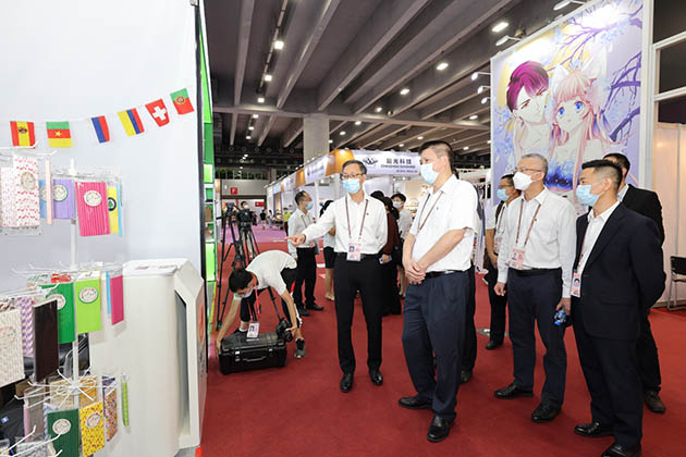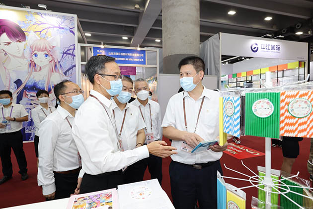 广州轻工集团党委书记、董事长曾郴湘带队视察我司第130届广交会展位