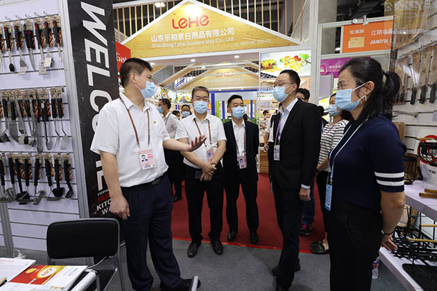10月15日第130届广交会开展首日,广州轻工集团党委书记、董事长曾郴湘,党委副书记、副董事长、总经理林虎等领导一行来到我司家居用品、餐厨用品展位现场视察。轻出公司党委副书记、副董事长朱璞真,党委副书记、副董事长、总经理陈国栋接待并陪同视察。