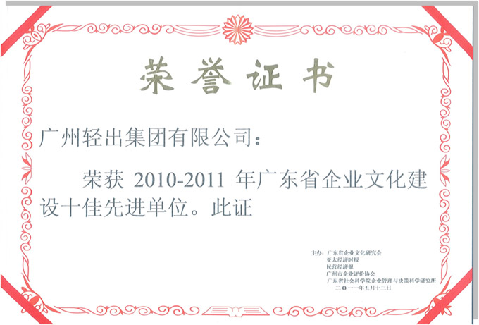 我集团蝉联2010-2011年广东省企业文化建设十佳先进单位