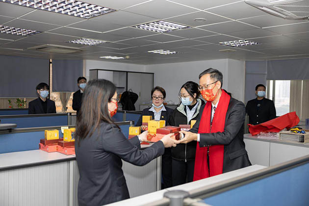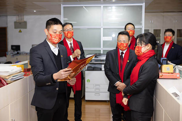 团拜会结束以后,公司领导班子前往各部门拜年并送上新春的祝福和美好的祝愿,鼓励大家虎年共创佳绩。