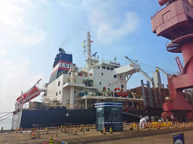 图1:货物停靠在山东省日照市岚山港口