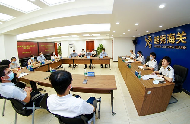 2022年9月20日,越秀海关召开第二届特约监督员聘任会,梁惠其关长等领导出席会议。广州轻出集团股份有限公司业务支持中心总经理曾悦等11位特约监督员正式上任。会上,梁惠其关长向特约监督员颁发了聘书并提出了两点期望:1. 和衷共济促关企合作,在政策允许范围内,尽最大努力为企业提供政策解读、信用信息服务、通关便利等方面的帮助;2.欢迎各特约监督员对越秀海关政风行风及业务工作提出宝贵意见,打造“亲”“清”关企合作关系,全力以赴促进外贸稳增长。