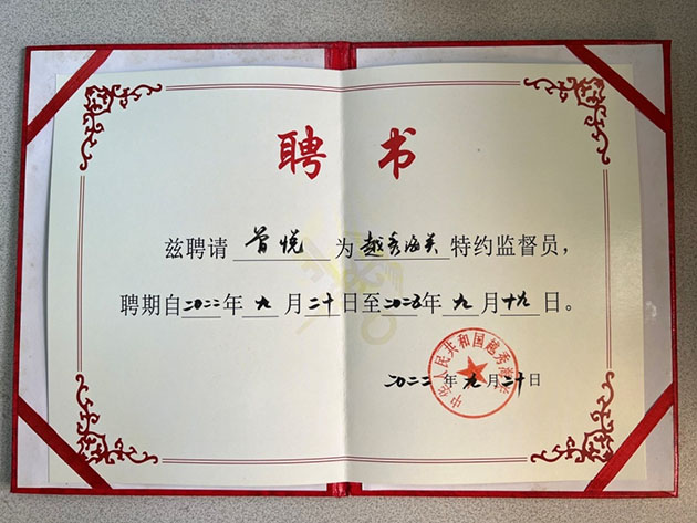 轻出公司业务支持中心曾悦总经理被越秀海关聘任为特约监督员