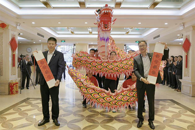 春回大地万物苏,金龙腾飞展宏图。轻出公司举行了简单而隆重的开工仪式,喜迎开工大吉。广州轻工工贸集团有限公司党委书记、董事长曾郴湘带领广州轻工集团各位领导来到轻出公司走基层,送上开工的关心与祝福。