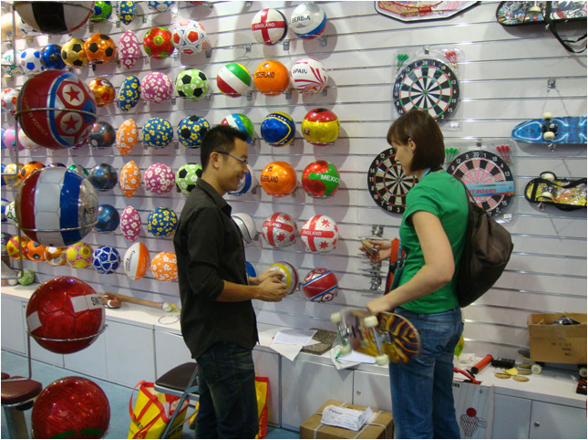 在五一国际劳动节之际,本届广交会第三期开门迎宾。我司在这期推出的大部分是品牌商品,包括WONCAI牌服装、雪花牌鞋、冠军牌体育用品、金雀牌乐器、ONER牌文具、航空牌箱包等。多数品牌展位都展出最新设计开发的产品,特别是服装展位,本届调整到主通道,位置优势明显,陈列的300余款牛仔裤全部是针对秋冬季节需求设计的新款,并且增加了男装系列,还引入“高级成衣定制”理念,摆设了专业立体裁剪欧洲人模,吸引了专业客户的关注。从开展首日起,客户就络绎不绝。