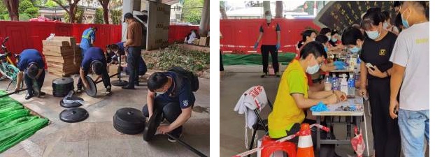 奋战一线暖民心。轻出公司继昨日向番禺区、天河区、越秀区、海珠区等各大核酸检测点捐赠“钻石牌”风扇后,5月30日下午,轻出公司党员志愿者服务队在广州轻工集团党委副书记、董事、工会主席朱英毅同志、党委组织部部长黄勤敏同志、轻出公司副总经理周游同志的带领下,继续向越秀区大沙头社区核酸检测点捐赠一批“钻石牌”风扇,并现场组织安装,使产品立即投入使用,为奋战在一线的医护人员及志愿者们送去一丝清凉,也献出轻工人的一份力量。期间,朱英毅同志参与到志愿者行列,为前来完成核酸检测的居民进行资料登记。