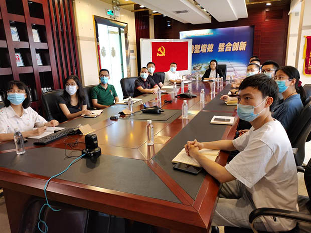 广州轻出集团总经理助理邹振健、三角公司党支部书记孙习江、家电公司总经理杨光政、三角公司总经理徐雁飞等三角党支部成员积极参与学习,在梅州的支部成员通过视频连线共同参与学习。
