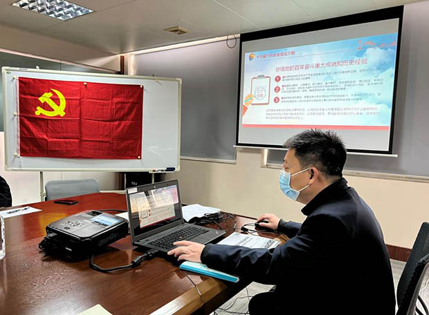 肖书记结合党的百年奋斗重大成就与历史经验和轻出公司“十四五”规划发展等工作实际,为第五党支部全体党员讲授题为“贯彻落实十九届六中全会精神 总结党的百年奋斗的重大成就和历史经验问题”的党课。