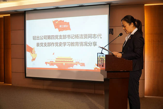 轻出公司第四党支部书记杨洁贤同志代表党支部作党史学习教育情况分享