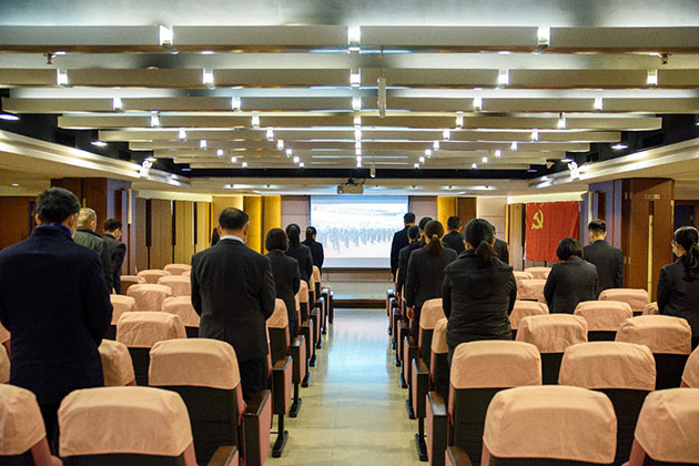 会上,所有参会人员着黑色服装,气氛庄严肃穆。大家保持肃立,认真聆听,共同追忆江泽民同志伟大光辉的一生,沉痛哀悼深切缅怀江泽民同志。