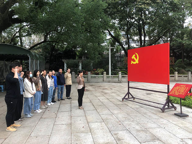 默哀毕,党员、团员们依次来到英烈碑前,瞻仰忠魂,敬献鲜花。随后,轻出公司党委副书记杨珍同志带领党员们面向鲜红党旗,党员同志举起右拳,重温入党誓词,砥砺初心使命,激发爱国情怀。