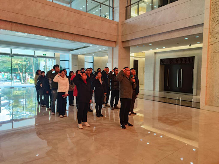 进入广东省反腐倡廉教育基地,全体党员在纪委书记王达同志的带领下庄重重温入党誓词,感悟初心使命和作为共产党员的责任担当。随后,“三新”人员在教育基地讲解员引导下深入参观了南粤清风、党的纪律等系列主题展厅。展厅通过图文视频、场景演示、实物案例、互动模拟体验等多种形式,剖析违纪违法行为给国家、家庭及个人带来的沉重代价,引导党员干部深入把握“六大纪律”的主旨要义,给在场的每一位党员干部上了一堂触及灵魂的警示教育课。
