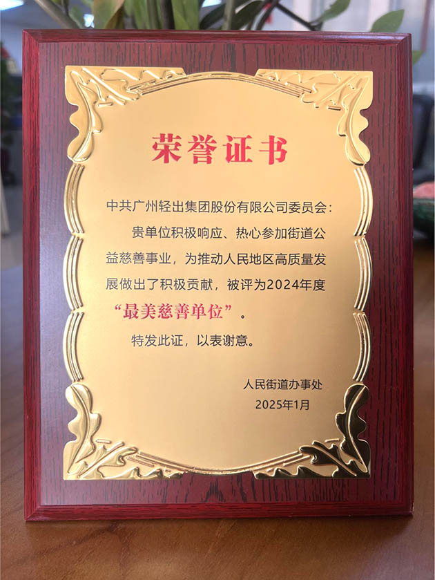 轻出公司荣获人民街2024年度“最美慈善单位”