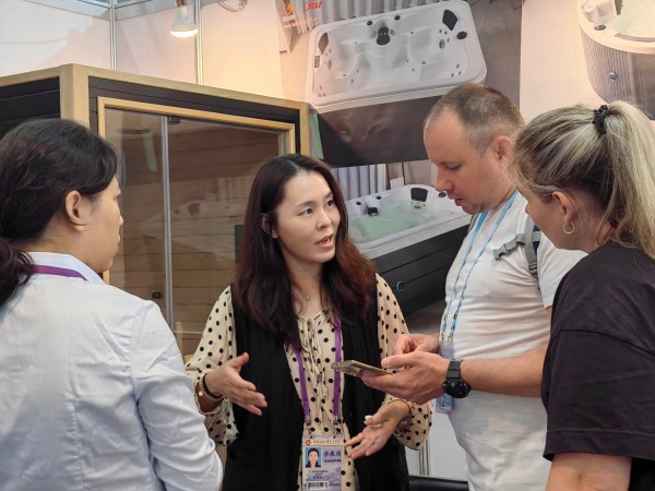 In the building materials exhibition area (Phase II), new moisture-proof and anti-corrosion building materials such as SPC flooring and WPC wall panels were introduced. In the bathroom fixtures exhibition area, a customized bathtub made its debut, supporting free combinations of exterior colors and functional modules. The newly-launched External chiller bathtub can quickly lower the water temperature to an ice- bath level, precisely meeting the needs of sports rehabilitation, and has won the favor of Indian customers with promising prospects for cooperation and development.